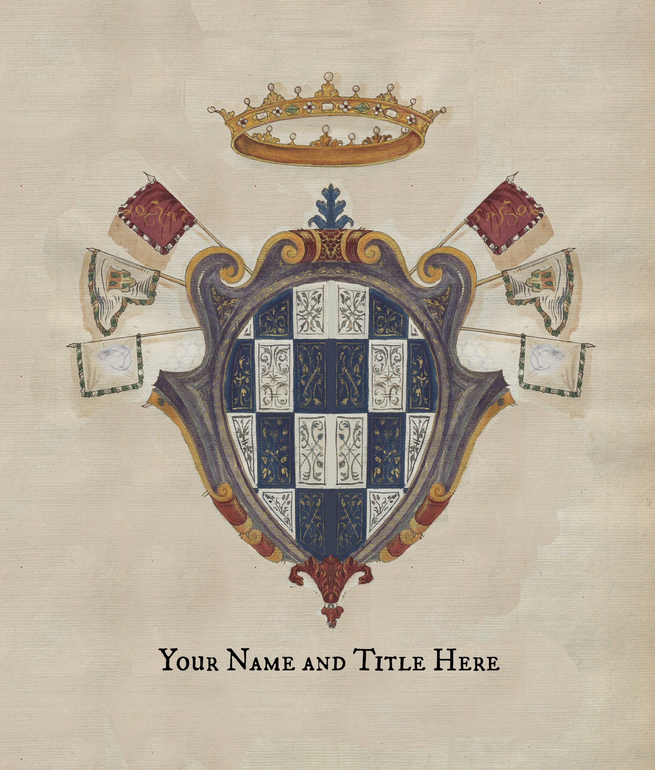 Your name and arms will painted by Caid’s scribes and displayed prominently at the event on a Roll of Arms. It can include a coronet, wreath, or cap of maintenance (where applicable) and can also reference your chosen affiliations (barony, household, etc.) so long as there’s a applicable registered badge registered with the College of heralds. A preferences form will be sent with your patron ticket receipt.