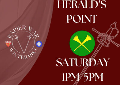 EVENT REGISTRATION: Adult Event Registration $45, Adult Member Discount Event Registration $35 amount. Youth aged 17 and under are guests of the Barony. Cash and checks only. Please make checks payable to “SCA, Inc/Barony of Wintermist.” There are no refunds.